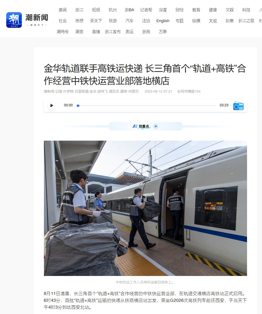 人民網(wǎng)、央廣網(wǎng)、改革網(wǎng)、《工人日報》客戶端、中央廣電總臺國際在線、《浙江日報》、浙江衛(wèi)視《聯(lián)播快訊》、潮新聞客戶端、浙江交通之聲、交通旅游導(dǎo)報、金華日報等國家級、省市級主流媒體相繼報道相關(guān)內(nèi)容。