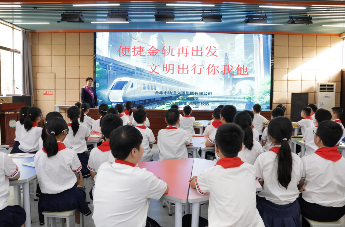 為進(jìn)一步宣傳普及軌道交通乘車知識,增強(qiáng)學(xué)生群體的安全意識,近期,金華軌道交通工作人員走進(jìn)東陽橫店二小教育集團(tuán)荊江校區(qū),開展“便捷金軌再出發(fā),文明出行你我他”安全宣講活動。